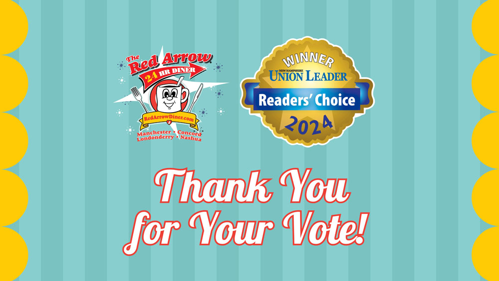 New Hampshire Union Leader Readers’ Choice Awards results and winners. Red Arrow Diner is an award-winning 24/7 restaurant, offering breakfast, lunch and dinner all day and night. Best late-night eats and best breakfast in NH.