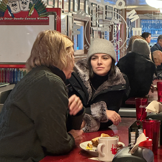 Madeline Halpert of BBC visits Red Arrow Diner Concord ahead of the New Hampshire First in the Nation Primary.