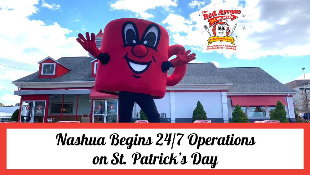 240222-Red-Arrow-Diner-Web-News-Article-Nashua-24-7-Operations Posted onFebruary 26, 2024February 26, 2024Authoradmin Starting on St. Patrick’s Day, Red Arrow Diner will conduct 24/7 operations and celebrate with half-price beverages.