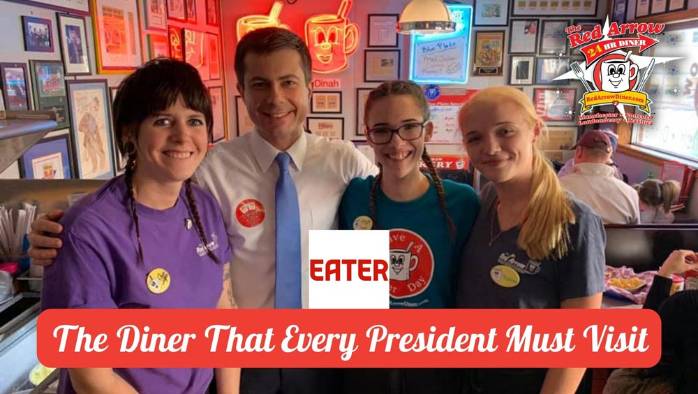 Red Arrow Diner is a New Hampshire place that every future president must visit. Pete Buttigieg takes photo with Red Arrow Diner Manchester team.