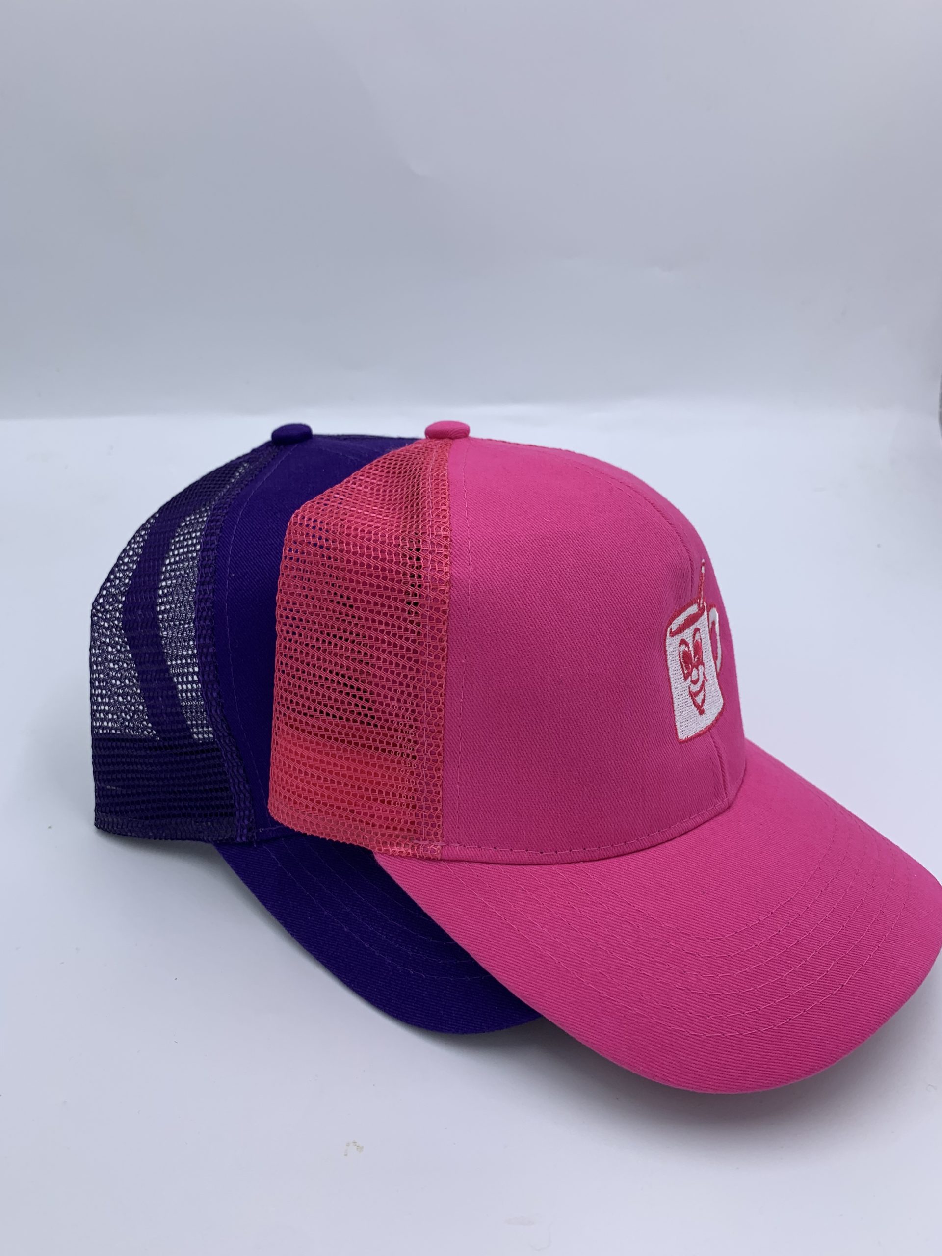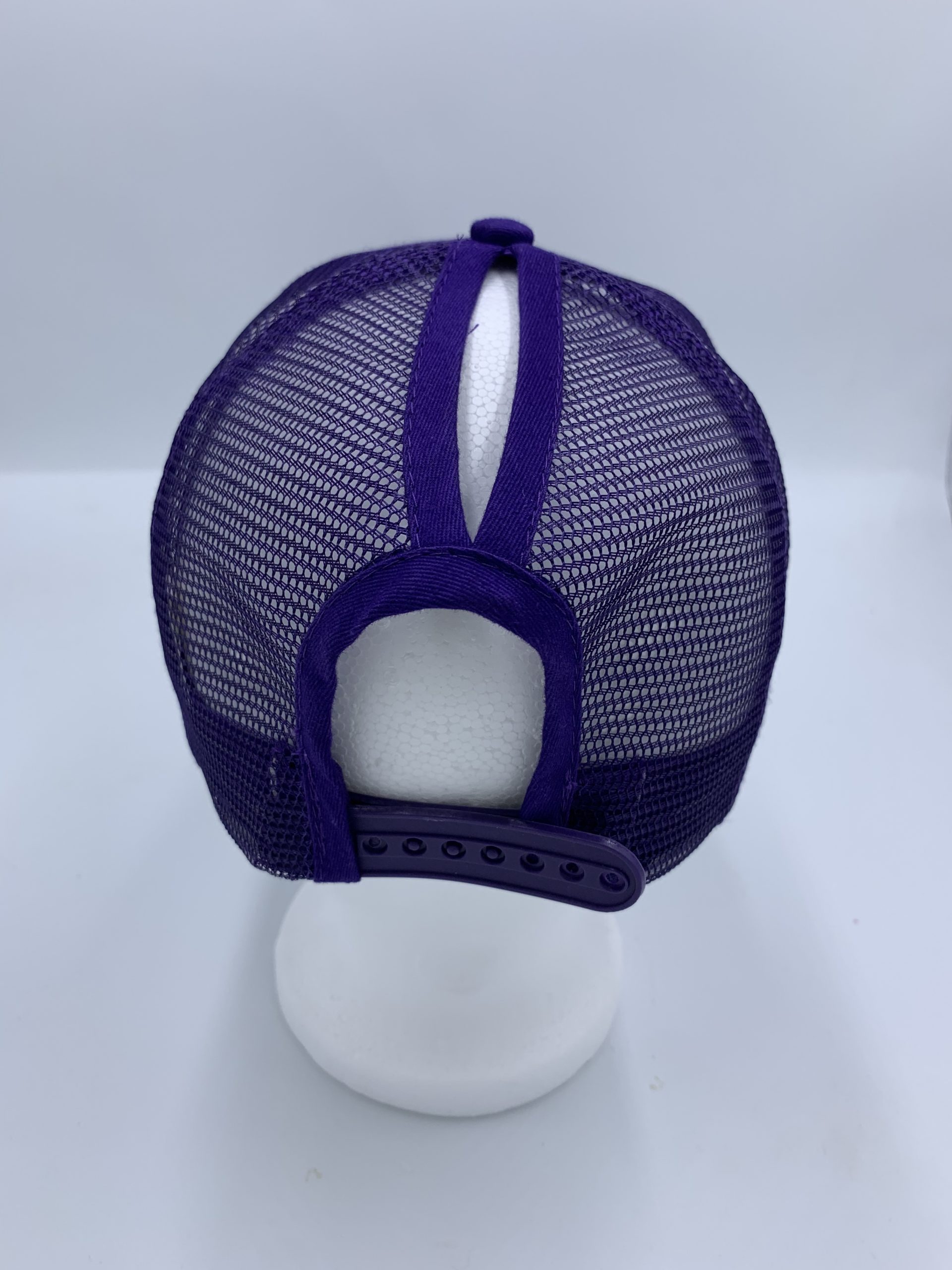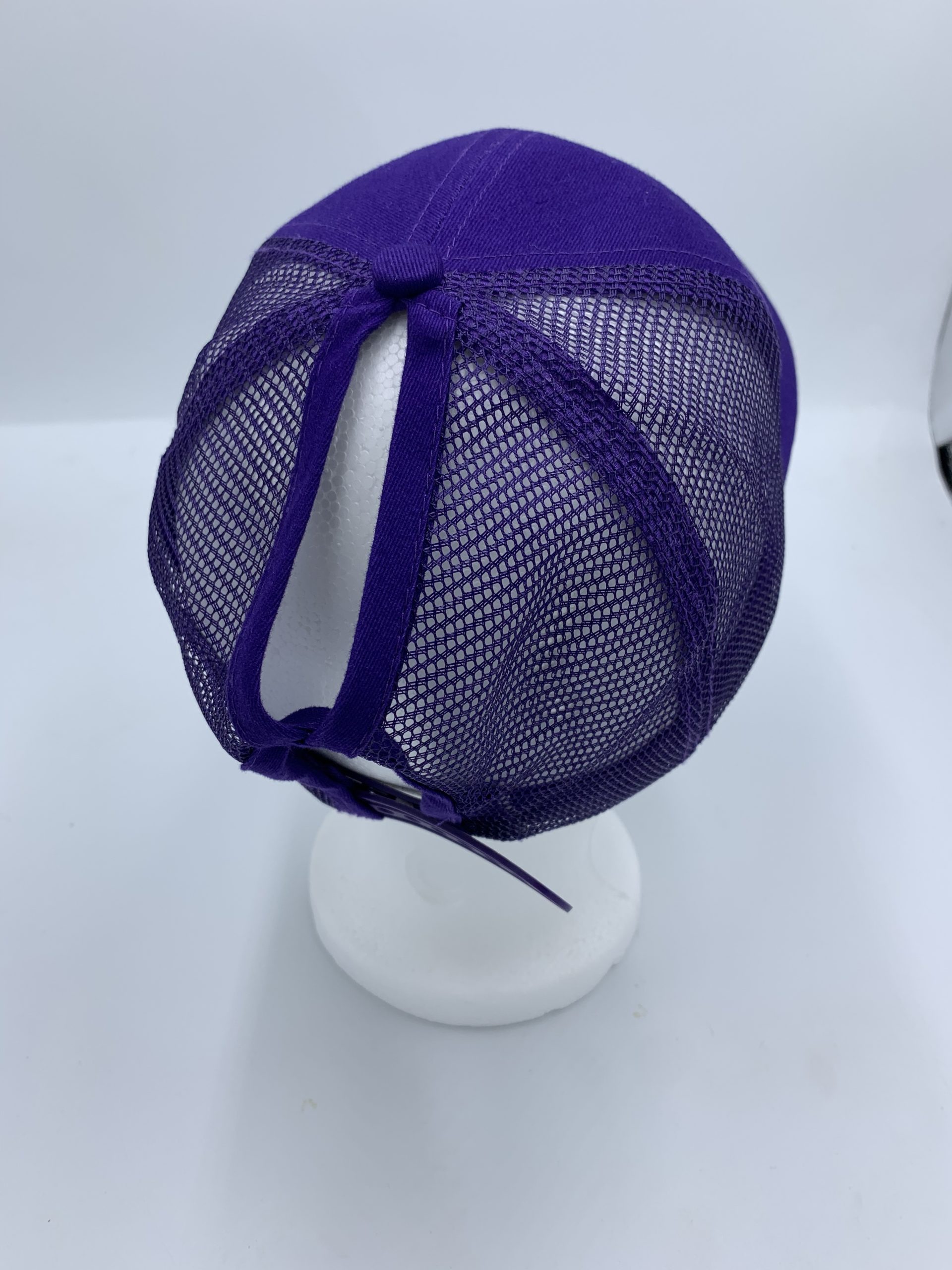 Ponytail Trucker Hats for the Women! Baseball style and adjustable- also with Moe embroidered! Purple and Pink available