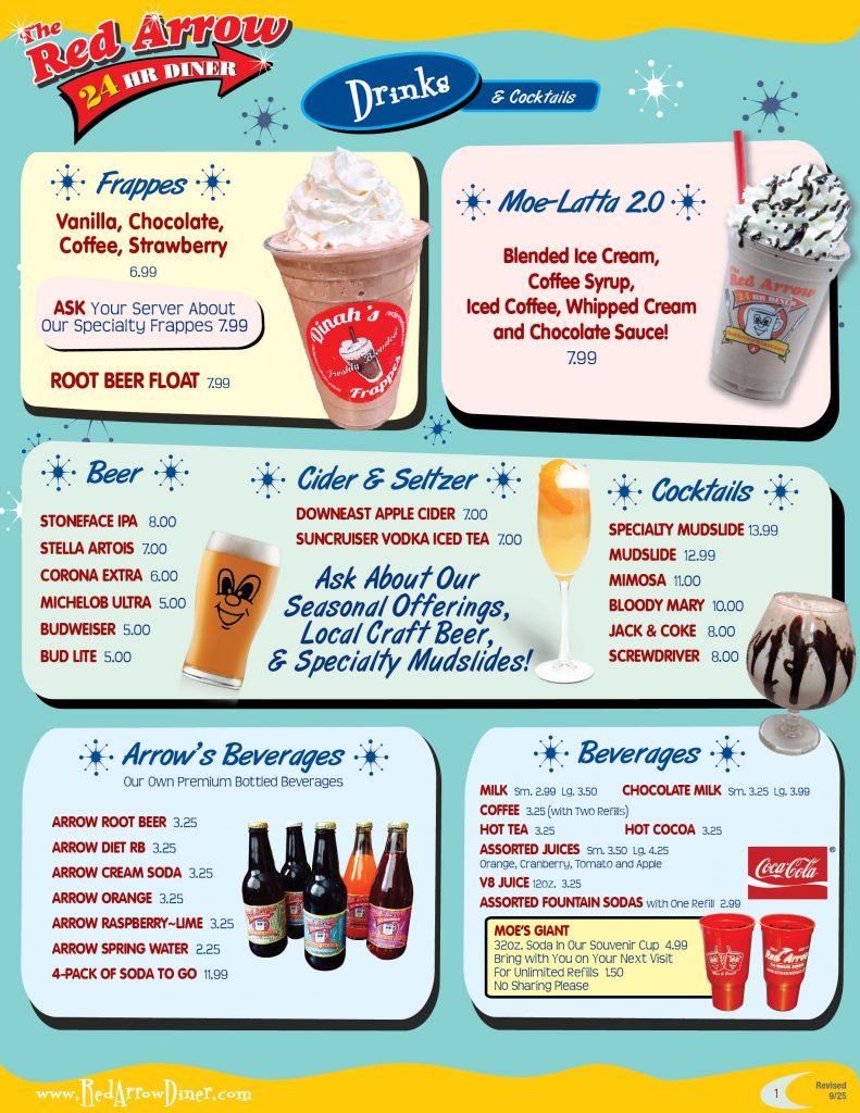 The Red Arrow Cocktail Menu is an exclusive offering available only at the Red Arrow Diner in Concord, Londonderry and Nashua. Patrons visiting the Red Arrow Diner in Manchester will not find this unique selection (yet!).